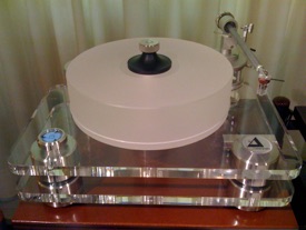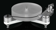 Equipado con el eje C.M.B. (Ceramic Magnetic Bearing) de 12 mm del MASTER REFERENCE, de 20.000 Euros, que consiste en que el plater, literalmente, flota sobre un cojin de repulsión magnetica, absolutamente silencioso, y aislado de cualquier tipo de ruido, zumbido, estatica, etc. etc.